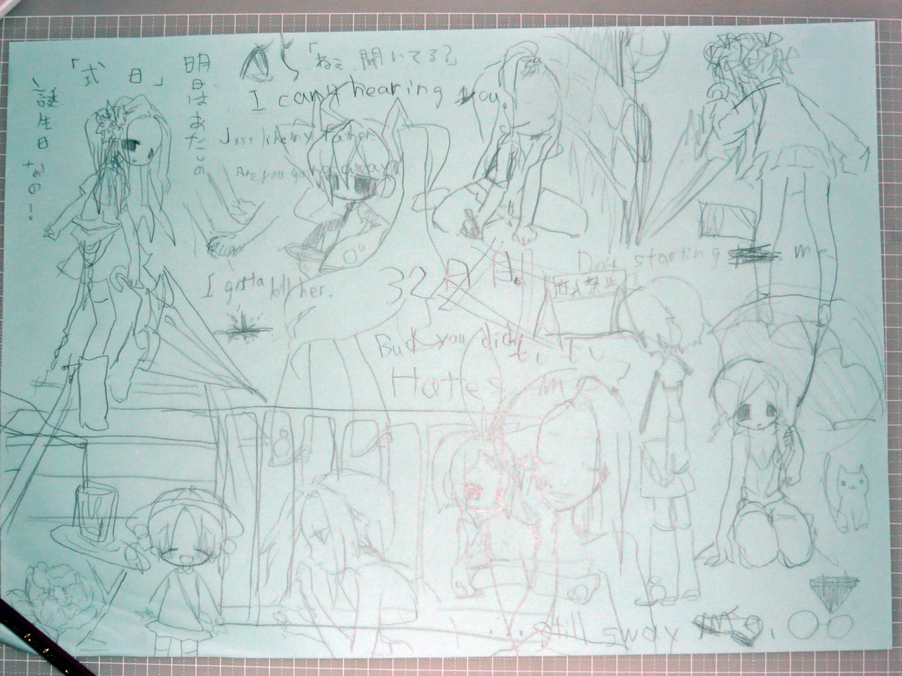 ボカロと園児以外は式日観ながら描きました 左手あそび